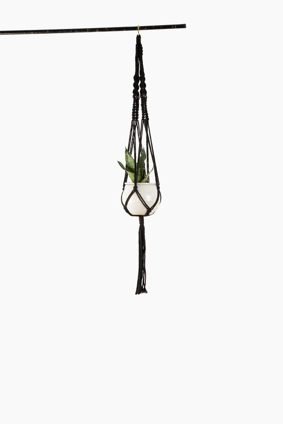 Deluxe Hand Woven Macrame Hanger with Beads - Obsidian Black