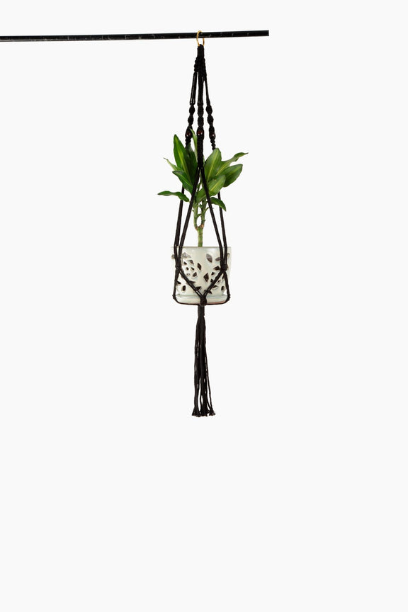 Deluxe Hand Woven Single Macrame Hanger - Obsidian Black