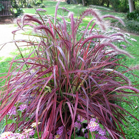 Unlike the species, this cultivar does not reseed. May be overwintered indoors or in greenhouse. Pennisetum prefers to be grown in rich loamy soil with good drainage and full sun or light shade. However, it will grow in rocky or sandy soil as long as it remains fairly moist. This grass resents having "wet feet".