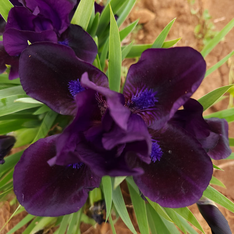 Iris Jewel Baby - E 10" Re-blooming. Dark purple self with mid-violet beard, slightly spicy fragrance. Good later fall rebloom. Blooms are 4-5 inches on top of 12 inch stems. Great miniature for in front of border or display. Zones 3-10. #1 grade Bareroot.