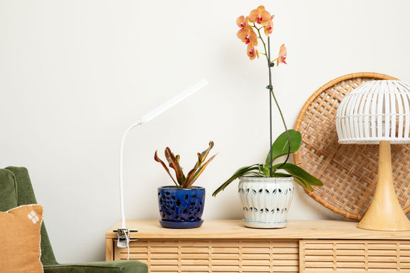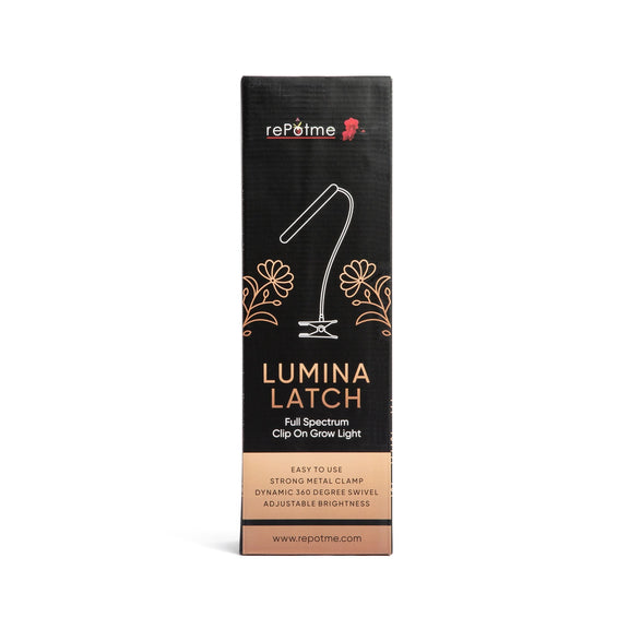 Introducing the Lumina Latch, a clip-on full spectrum grow light designed to revolutionize your indoor gardening. This sleek device offers a dynamic 360-degree swivel, providing targeted illumination to promote healthy plant growth from any angle. The Lumina Latch features a user-friendly controller complete with a built-in dimmer, timer, and power switches, ensuring optimal light conditions at your convenience. Its sturdy metal clamp securely attaches to a variety of surfaces, ensuring stability while showcasing its unique design. Experience the practicality of tailored lighting for your indoor garden with the Lumina Latch, where function meets form in the world of indoor gardening.