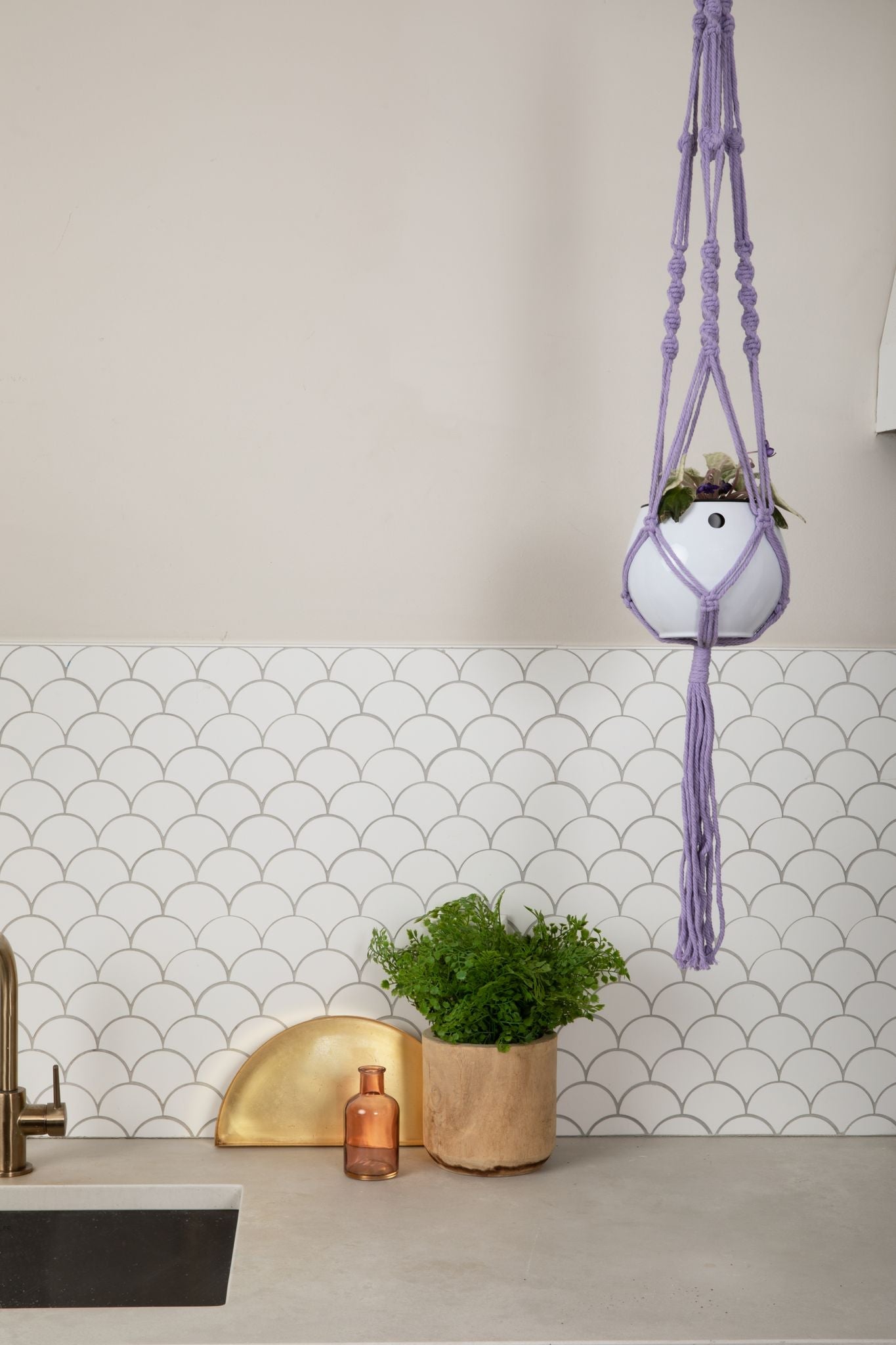 Macrame Hanger Self Watering Set - Lavender Purple + Designer White