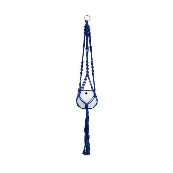 Macrame Hanger Self Watering Set - Midnight Blue + Designer White